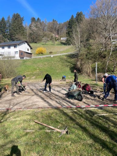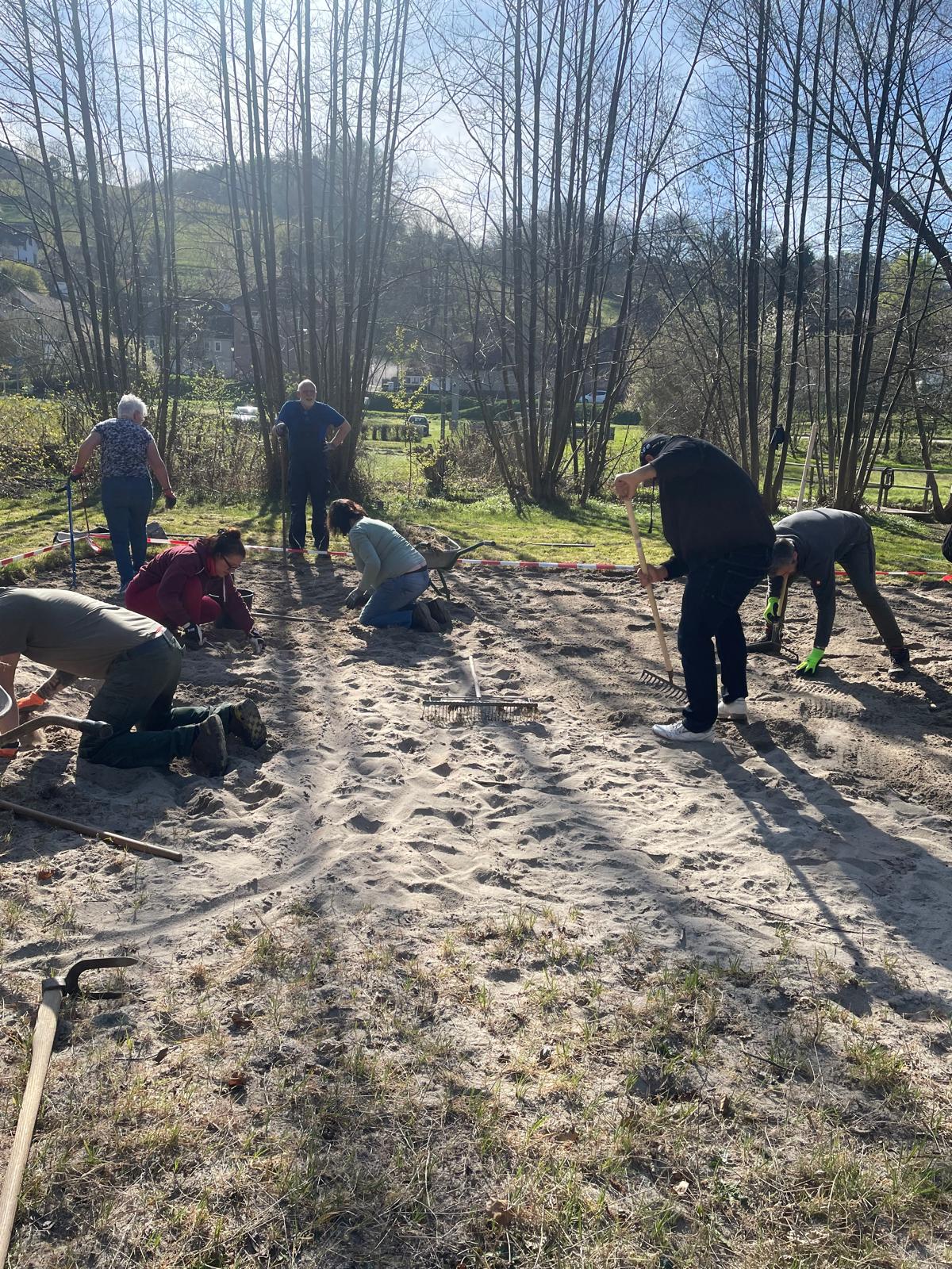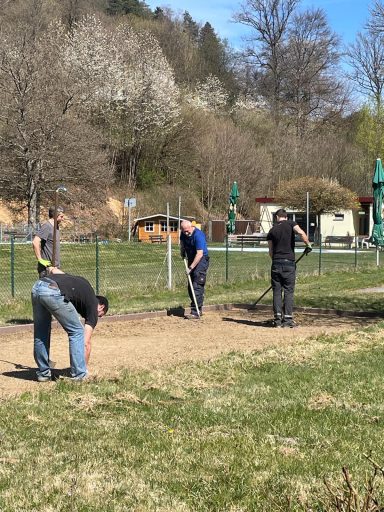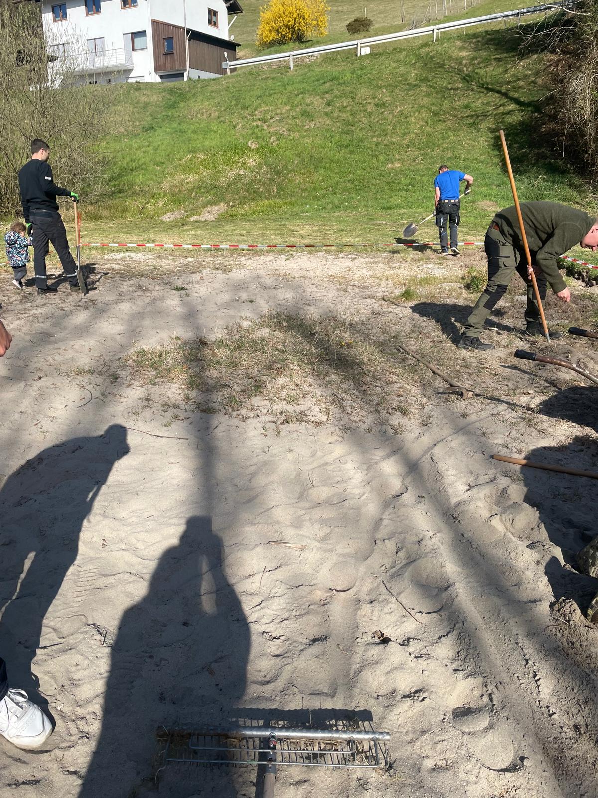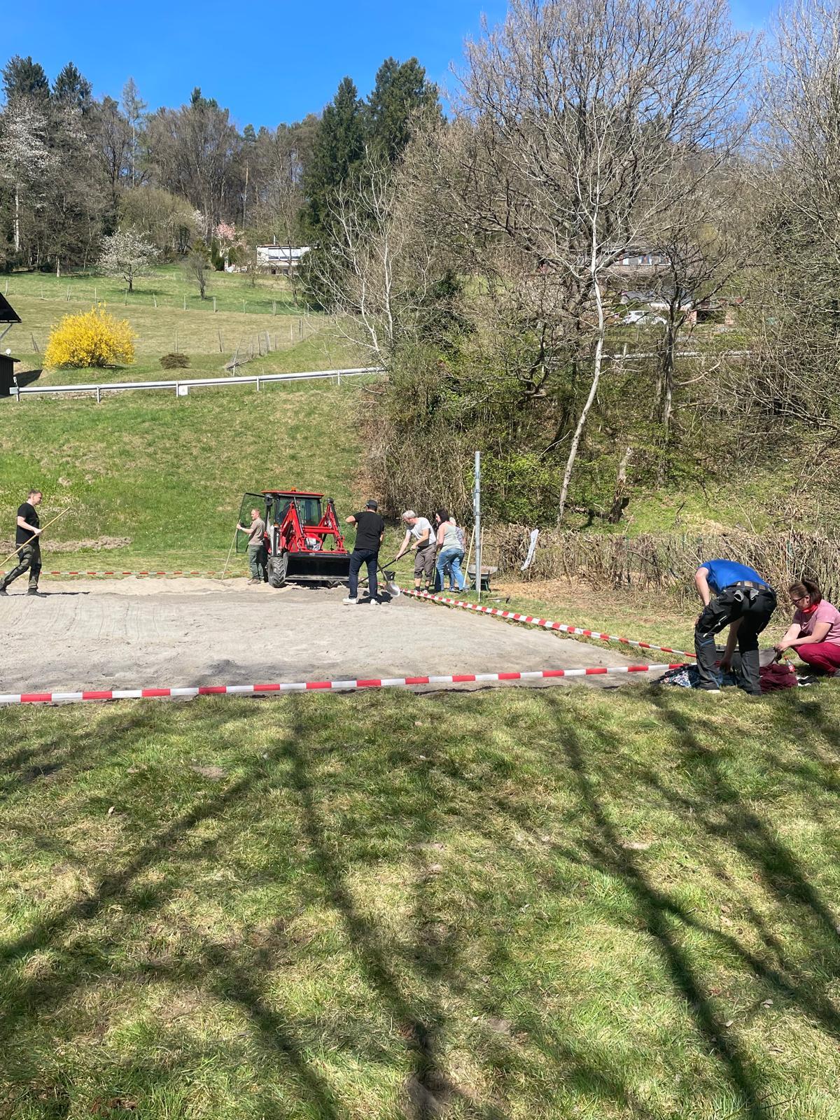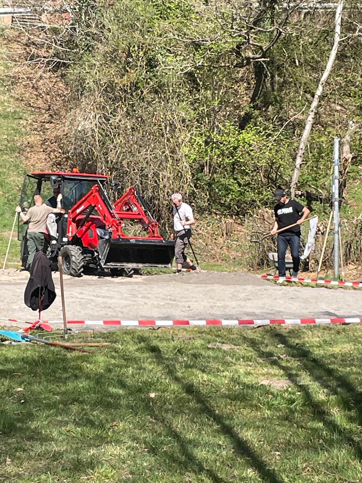 Ein besonderer Dank gilt Uwe Fischer und der Fa.Krieger, die uns den Sand zur Verfügung gestellt hat - ohne diese großzügige Unterstützung wäre der reibungslose Start nicht möglich gewesen. Ebenso bedanken wir uns bei Willi Krämer für den Transport und bei Volker Schindler für die Einbringung des Sandes.