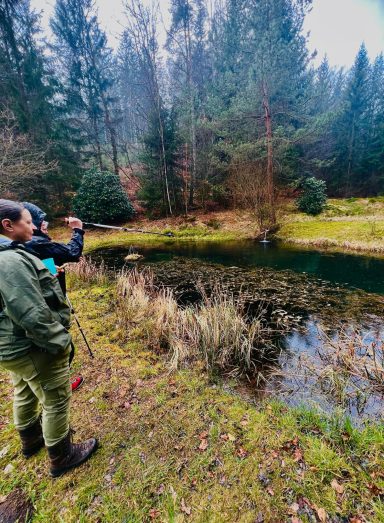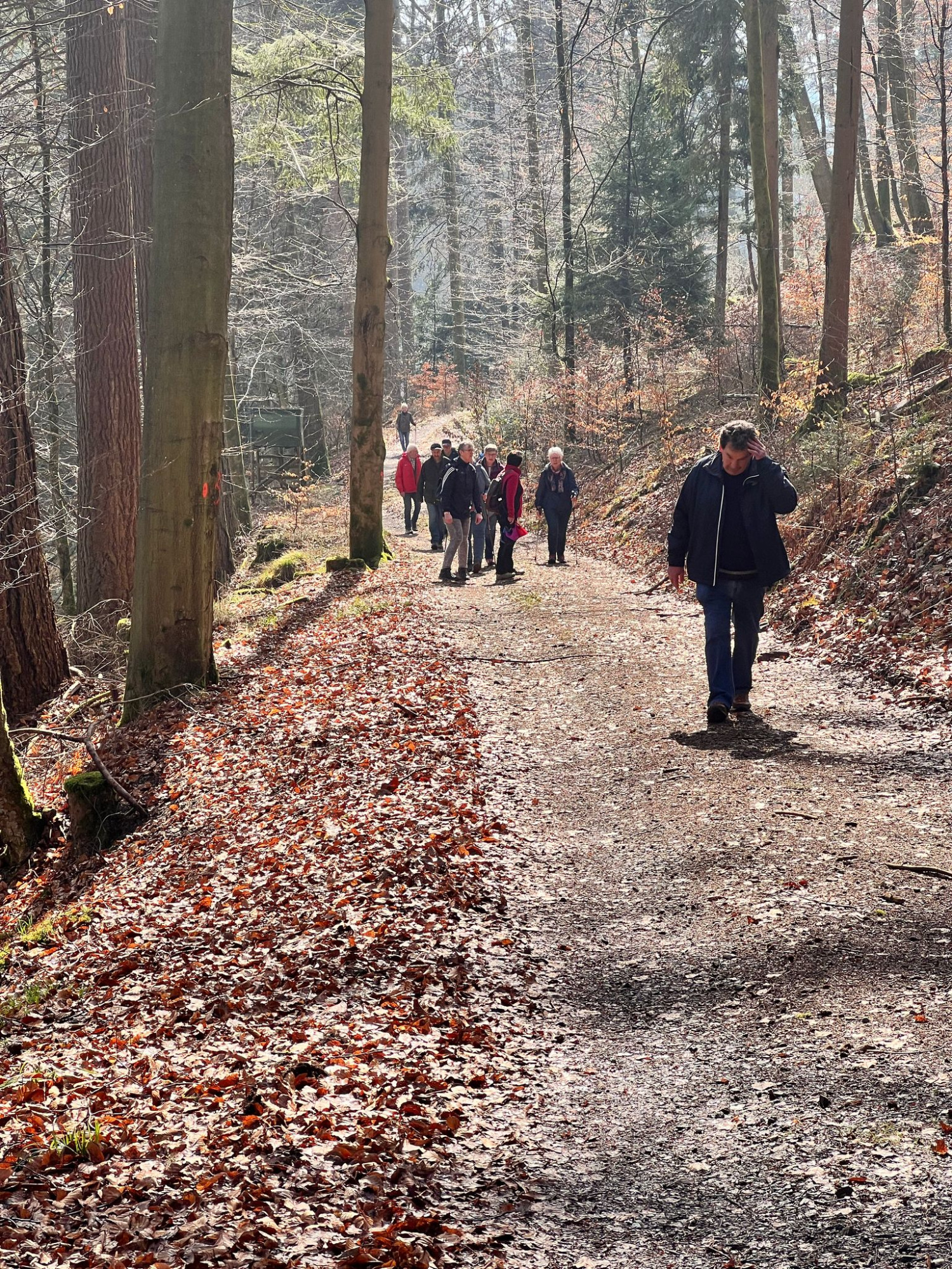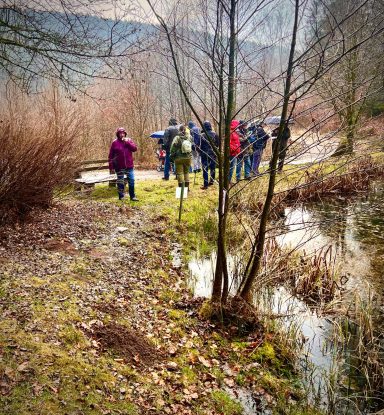 Unsere Frühlingswanderung führte uns vom Parkplatz am Tretbecken in Hinterbach durch die Saubuche und das Olfener Tal. Bei unserer Wanderung konnten wir durch Werner Friedrich einiges zur Geschichte des Tals erfahren.