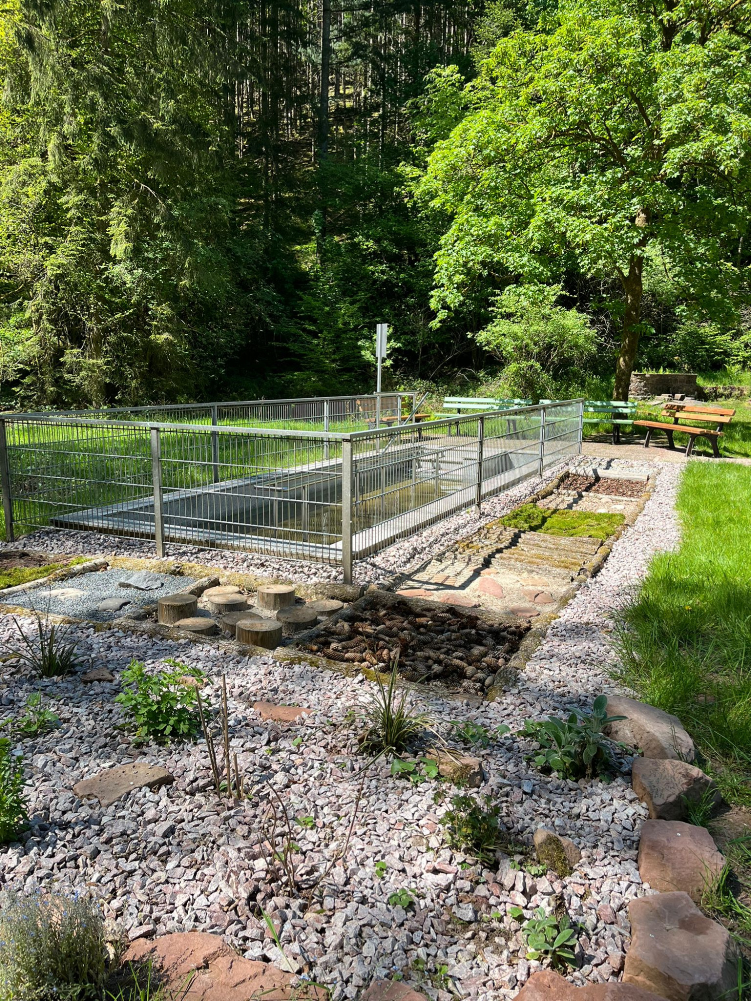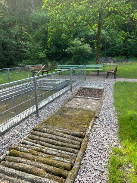 Am Tretbecken in Hinterbach hat sich im vergangenen Jahr einiges getan. Im Herbst wurde im Rahmen eines Freiwilligentages ein Barfußweg aus naturbelassenen Materialen rund um das Becken angelegt. Zusätzlich sorgen liebevoll gepflanzte Blumen und Gräser für ein freundliches Ambiente. Jetzt wurden noch 4 neue Bänke augestellt. Damit lädt das Tretbecken nicht nur zum Kneipen, sondern auch zum Verweilen ein - ein Ort der Erholung für alle Generationen.