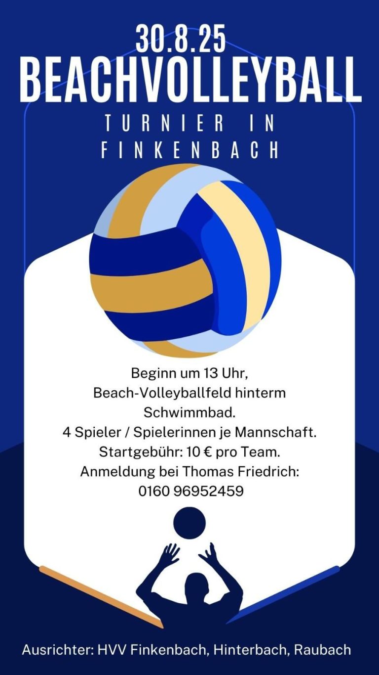 Bei bestem Spätsommerwetter fand unser erstes Beachvolleyball- Tunier in Finkenbach statt. Zahlreiche Mannschaften traten auf dem neu gestalteten Sandplatz gegeneinander an, um sich bei spannenden und fairen Spielen den erstmals ausgespielten Wanderpokal zu sichern.